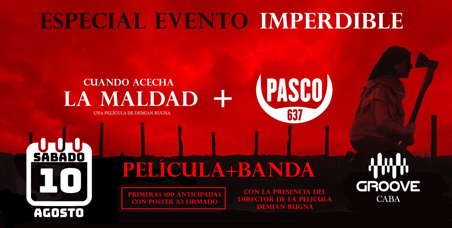 El 10 de agosto a las 19hs en Groove Palermo, se proyectará la película “Cuando acecha la maldad”, y la banda metalera “Pasco” ofrecerá un concierto.