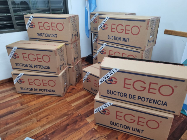 Por un lado se entregaron suctores de potencia equipados con filtros para prevenir que el aire contaminado recircule y hemosuctores de aerosoles, que son equipos para aspirar los aerosoles que se generan dentro de la boca del paciente al trabajar con turbina o cavitador.