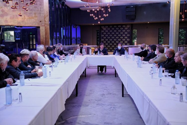 En el marco de las nuevas aperturas establecidas a partir de la mejora sostenida en la situación epidemiológica, el gobernador de la provincia de Buenos Aires, Axel Kicillof, se reunió esta tarde en Quilmes con empresarios y representantes de trabajadores vinculados a la nocturnidad, junto al ministro de Producción, Ciencia e Innovación Tecnológica, Augusto Costa, y la intendenta local, Mayra Mendoza. Fue en la sede de la discoteca El Bosque, con el objetivo de avanzar en medidas que acompañen la reactivación de una de las actividades más golpeadas por la pandemia.