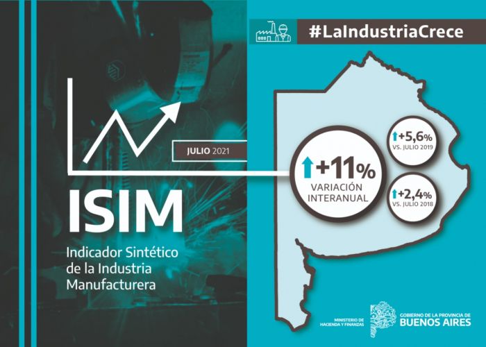 El Ministerio de Hacienda y Finanzas informa que la industria manufacturera de la provincia de Buenos Aires tuvo un crecimiento en julio del 11% respecto del mismo mes del año pasado, superando incluso los valores para un mes de julio desde 2018. Mientras tanto, en el acumulado de los primeros siete meses de 2021 registró una suba de 20,2% respecto al mismo período del 2020.