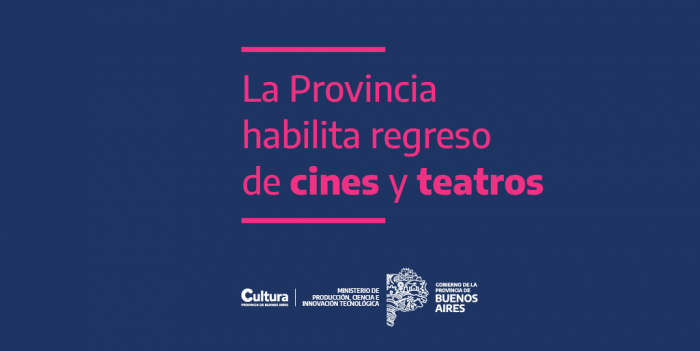El Gobierno bonaerense dispuso que a partir de este viernes las salas de teatro pueden abrir con un aforo del 50% y las de cine del 30%, siempre en estricto cumplimiento del protocolo y las medidas de prevención vigentes.