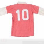 La camiseta está autenticada y fue utilizada en un partido por el astro argentino y pertenece a Juan Carlos Marenda, ex lateral que brilló en Argentinos Juniors a principios de los ’70.