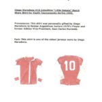 Según el certificado de autenticidad, la camiseta que ya alcanza los 1800 dólares a 9 días de la finalización de la subasta, está acompañada por un pase de la Copa Oro 2000 del excompañero de Maradona en Boca Juniors, Norberto Outes, que sirve como su carta de procedencia.