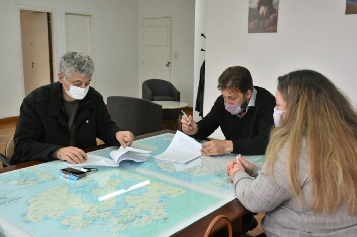 El jefe de Gabinete del Ministerio de Infraestructura de Servicios Públicos, Diego Menéndez,  y el intendente de Villa Gesell, Gustavo Barrera, sellaron dos convenios para obras de infraestructura deportiva y pavimento a ejecutar en el mencionado municipio. Del encuentro también formó parte la asesora de dicha cartera, Renata Viña.